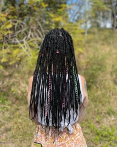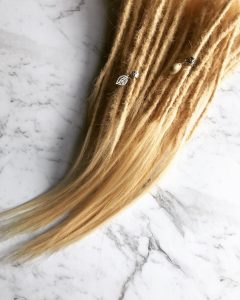 There are a wide range of colours available and also many combination colours in all types of extensions. Synthetic and wool hair looks very realistic when made into dreads, both are also very light weight and dry relatively quickly when washed. Synthetic extensions cannot be dyed however, so be sure to select the colour you are happy with. Wool extensions can be custom made in any colour which is also designed to be the final product. Wool is the most economical as far as cost too. There are quite a few ways extensions are made, however I only make them the same way as I make dreadlocks which gives you the most natural realistic look. I make each extension by hand to order and I have developed a method to prepare the synthetic to soften it and make it more “real” looking. This is why extensions are quite a big investment – they take many hours to make and then many hours to install. Just remember that with the method I use – you will not lose half your length when I make your dreads…so you may not even need extensions.